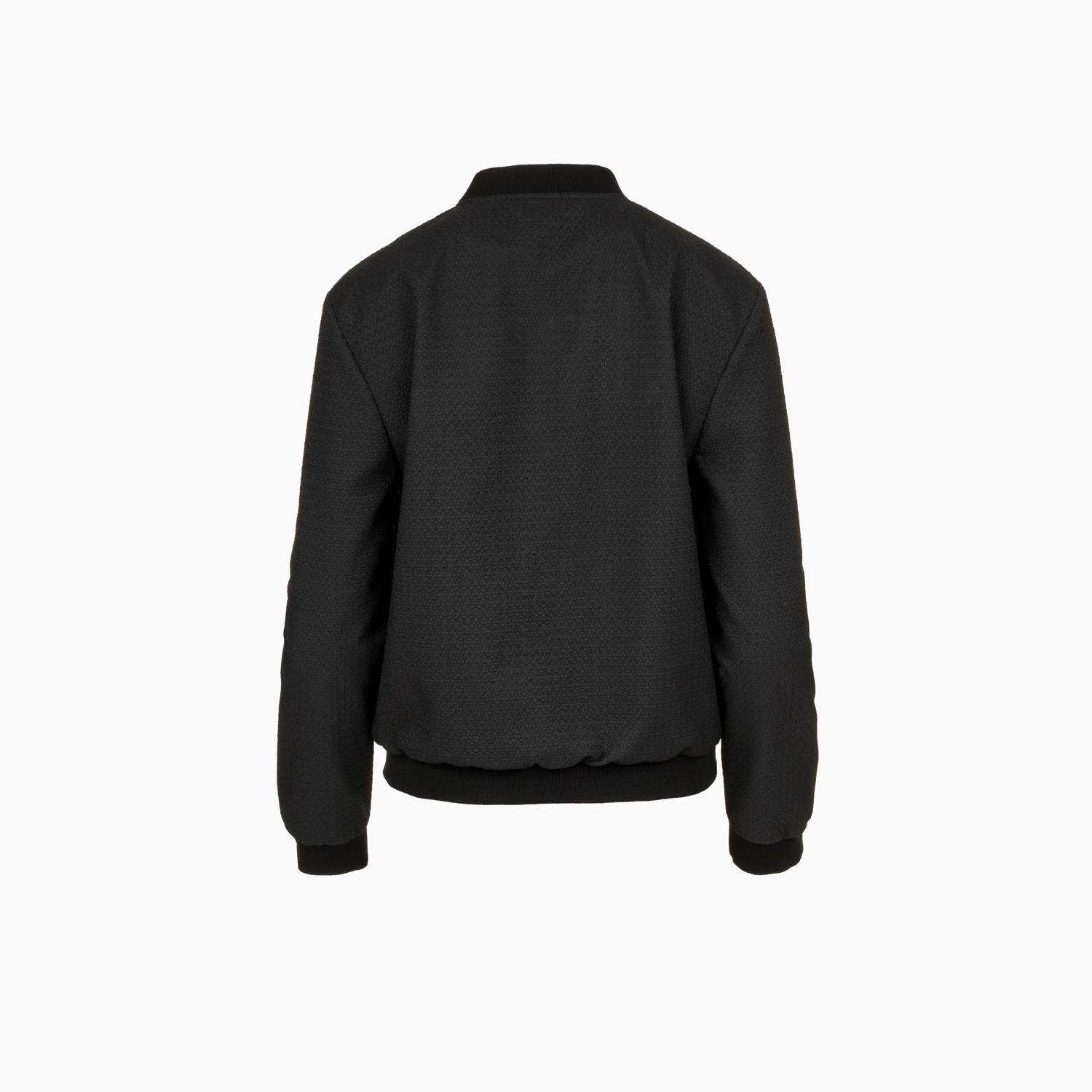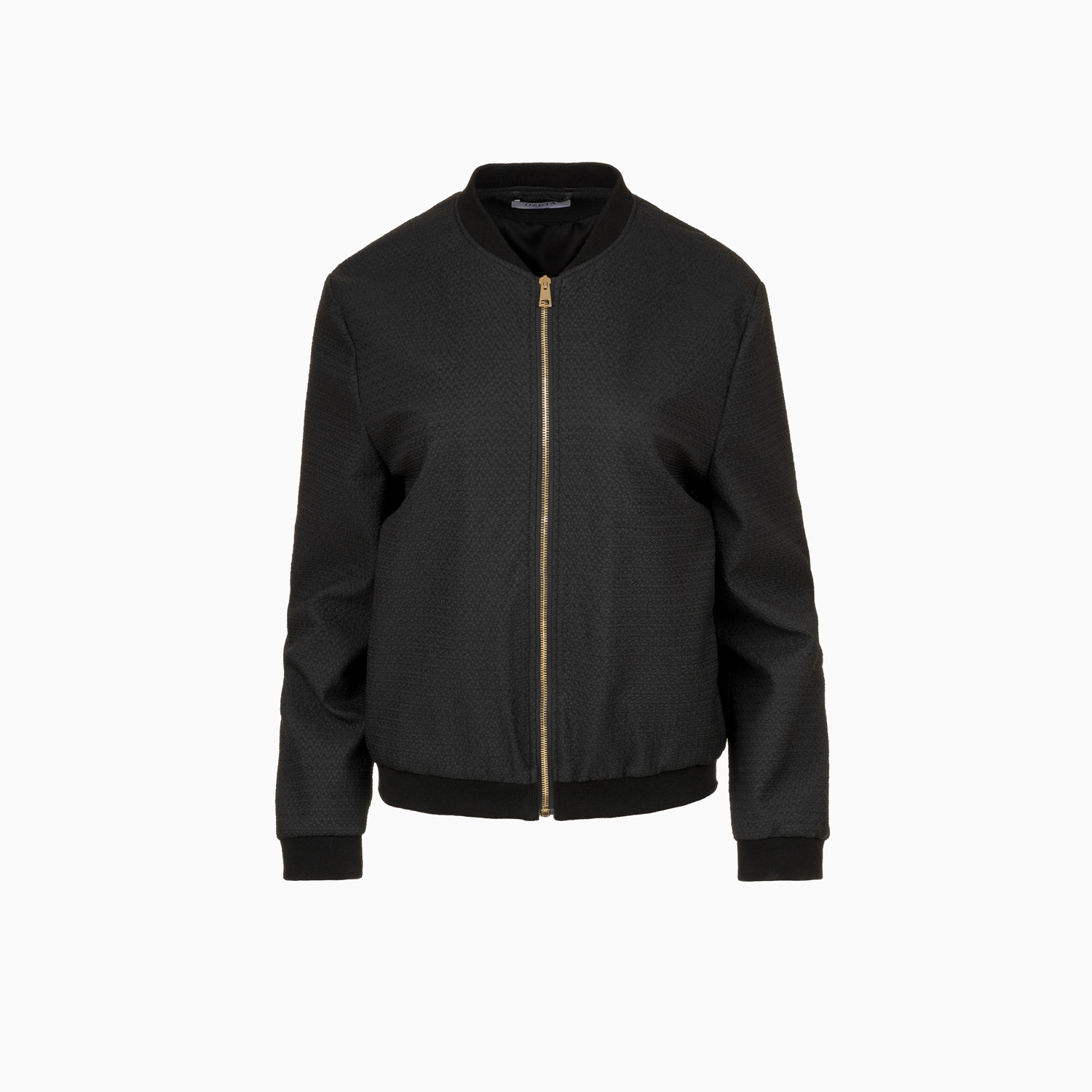 Die schwarze Bomberjacke ist aus strukturiertem Stoff mit dezentem Metallic-Touch. Der trendige Look der Bomberjacke wird durch einen goldenen Zierreißverschluss komplettiert. Dieses Schlüsselelement der Saison können Sie garantiert über mehrere Saisons hinweg in vielen Styling-Varianten tragen.